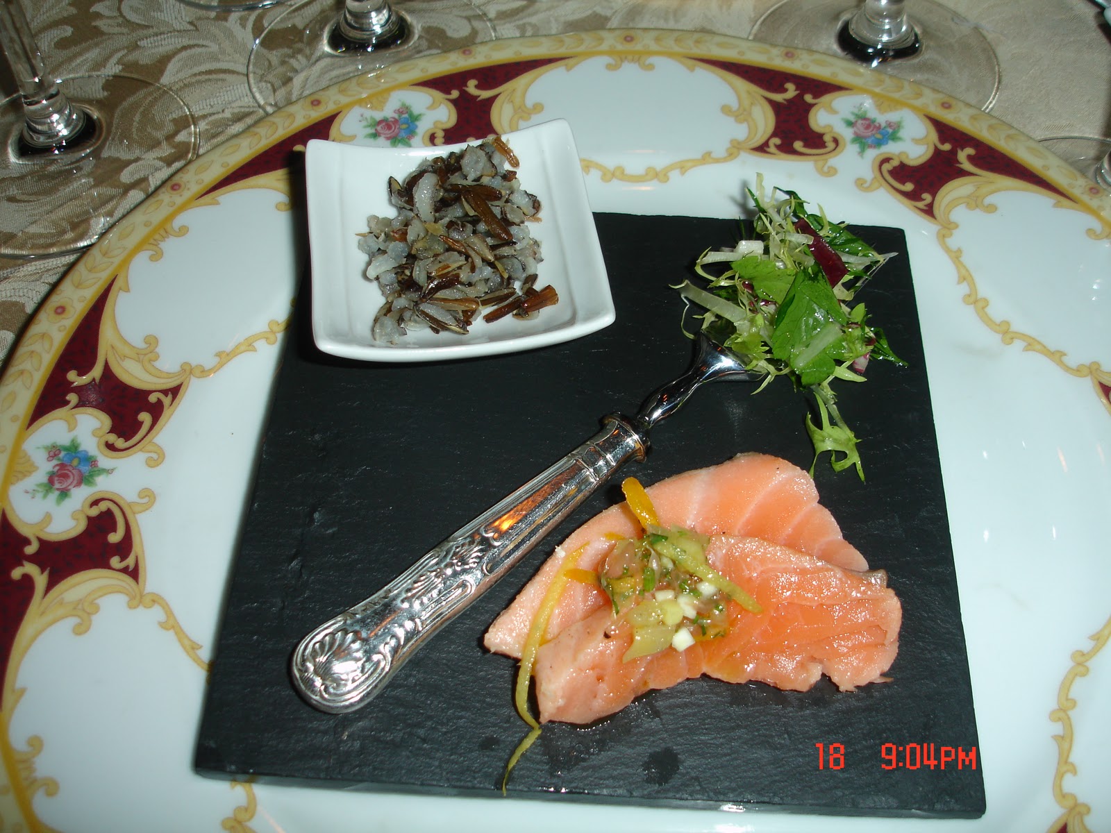 Chef Emmanuel Soares’in(ki yemeklerle fazla ilgilenince, yanımıza gelip memnuniyetimizi de sordu) hazırladığı nefis yemeklerle güzel bir akşam geçirdik.Yemek öncesi restaurantın ikramı olarak gelen füme somon …