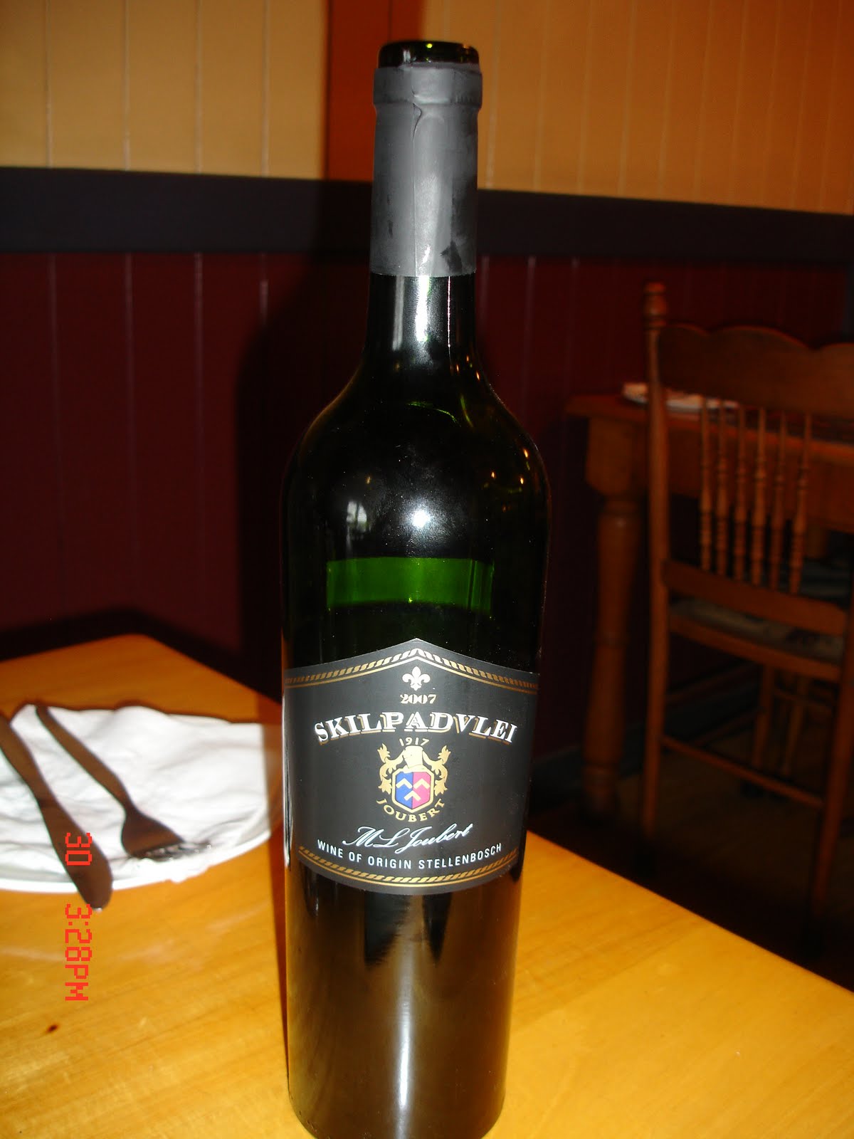 Yemek ile birlikte içtiğimiz bir G.Afrika kırmızı şarabı. Skilpadvlei markasının ML Joubert’i.