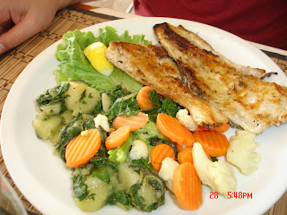Ben sadece balık isterim diyenler için seçim, mevsimine göre değişen günlük balık. (Fileti ribe na rostilju (prilog blitva, krompir)) (daily fish fillet with vegetables , potatoes) (7 Euro)
