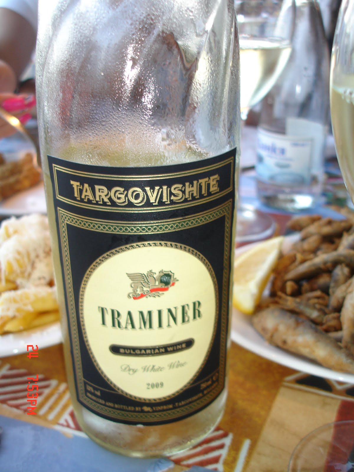 Bu yiyeceklerin yanında ben biraya devam ederken, bayanlar için seçimim, Bulgar Targovishte markasının Traminer beyaz şarabı. %100 Traminer cinsi üzümden.