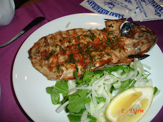 Saray Restaurant , Sinop ( * * * ) Bir Cevap Yazın (Koordinat: N42˚01.440′ ; E035˚08.969′) Adres: İskele Cad. Rıhtım Sok. No:18 SİNOP Tel: 2611729 Yoğurtlu patlıcan, mayonez ve sarımsak eşliğinde İskorpit tava(Çarpan) Soslu palamut domates,maydanoz ve soğan ile marine edilmiş