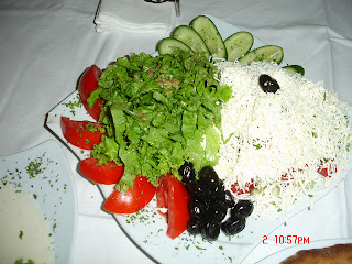 Üzeri taze peynir rendelenmiş, yine Balkanlara has Shopska Salata. (sallate shope)