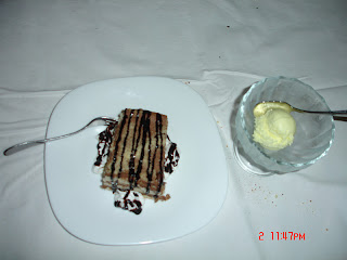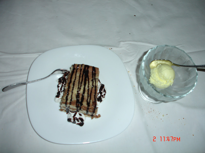 Tatlı olarak da yine buraya özgü, dondurma ile sunulan bir nevi keki tattık. Bizim tatlı standartlarımızda olmasa da, deneme şansını bulduk diyebilirim. (torte e shtepis)
